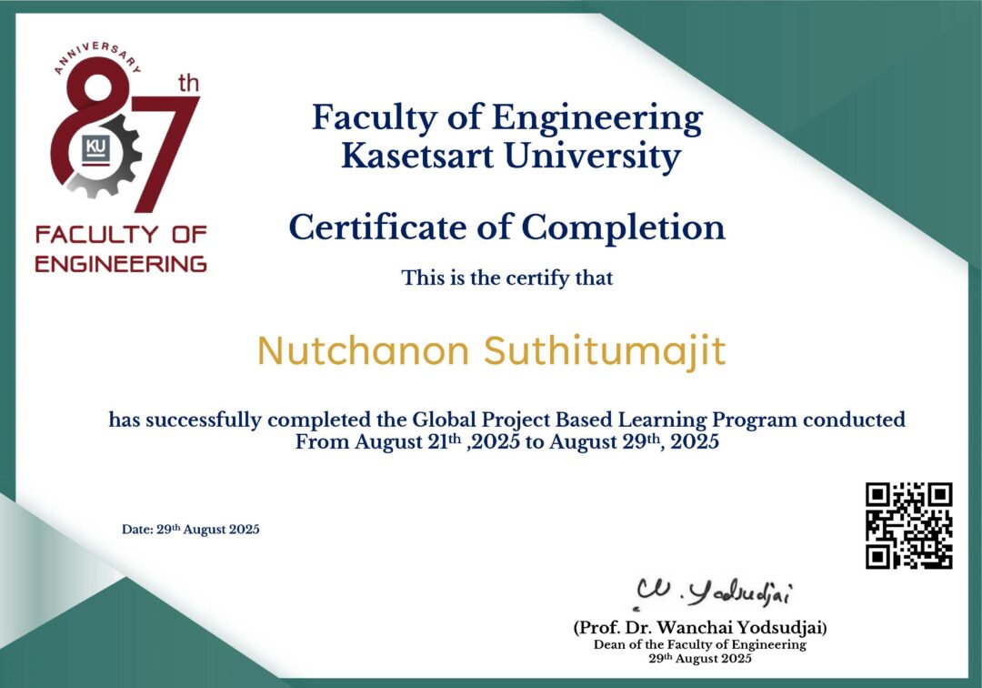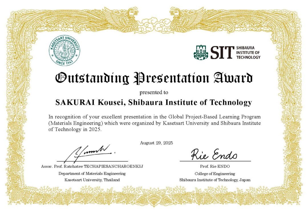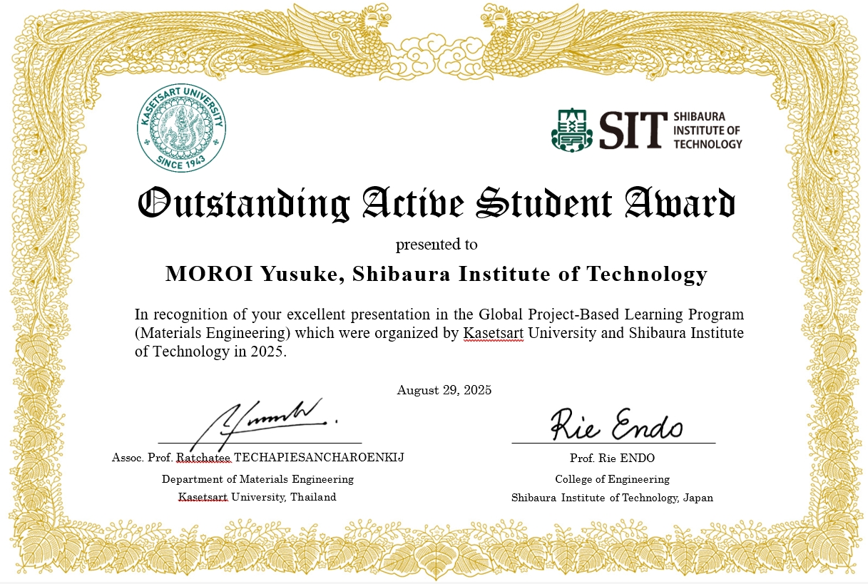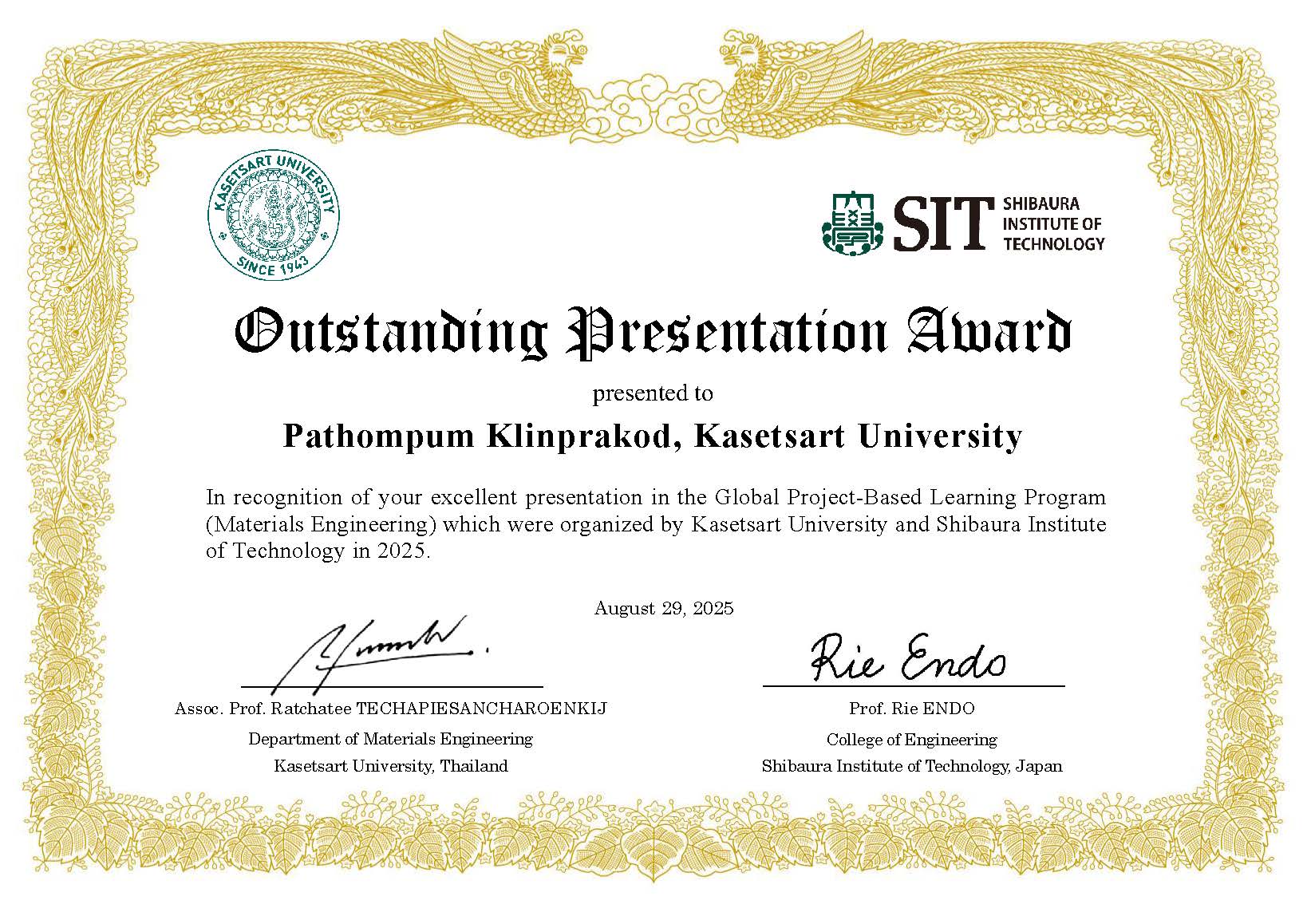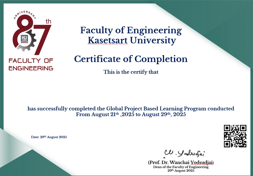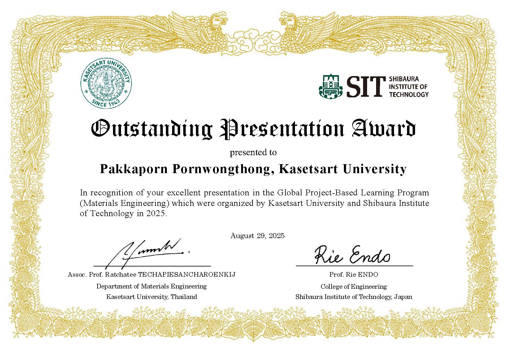 The KU–SIT Global Project-Based Learning (g-PBL) Program 2025 officially commenced on August 21, 2025, hosted by the Department of Materials Engineering, Faculty of Engineering, Kasetsart University, in collaboration with the Department of Materials Science and Engineering, Faculty of Engineering, Shibaura Institute of Technology, Japan. The program takes place from August 21–30, 2025 at Kasetsart University.