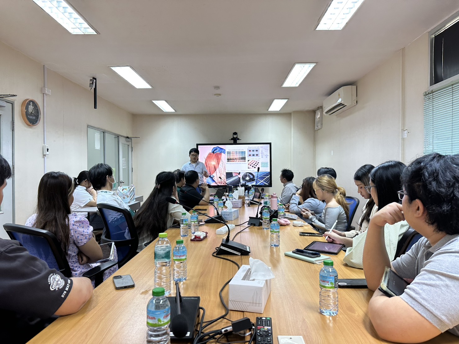 Prof. Lin ได้เยี่ยมชมห้องปฏิบัติและประชุมหารือกับ รศ.ดร.ราชธีร์ เตชไพศาลเจริญกิจ และ รศ.ดร.กษิดิศ พนมสุวรรณ สำหรับความร่วมมือการวิจัยด้าน semiconductor interfaces สำหรับ perovskite solar cells และ hydrogen catalysts ร่วมกับฐานวิจัย Semiconductor and Nanomaterials